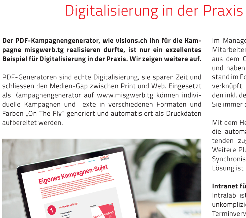In der Märzausgabe des "TGVaktuell", dem Magazin des Thurgauer Gewerbeverbandes, konnten wir einen Artikel zum Thema "Digitalisierung in der Praxis" platzieren.
