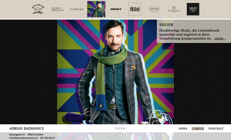 Für die Werbe- und Kreativagentur Alltag in St.Gallen durften wir die technische Realisierung der Webseite des bekannten St. Galler Modelabels Adrian Baumanns übernehmen. Focus der Webseite liegt auf der stimmigen Online Präsentation von bekannten Marken- und Männerbekleidung. Die Page ist responsive für Mobile und Tablet optimiert. Stimmige Page in der typischen Alltag Handschrift.