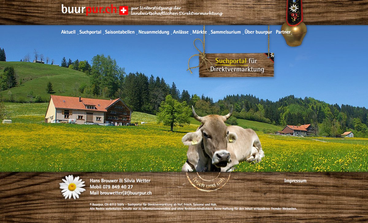 Internetauftritt buurpur.ch - zur Unterstützung der landwirtschaftlichen Dirketvermarktung. Suchportal mit Schweizerkarte / Google-Geotracking - Umsetzung mit dem Content-Management-System MODx.