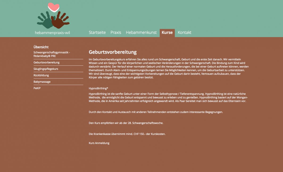 Mitte Januar hat die Hebammenpraxis in Wil neu eröffnet. Die visions.ch gmbh realisiert die Webseite mit Content-Management-System und dem Modul Veranstaltungskalender mit Buchungssystem.