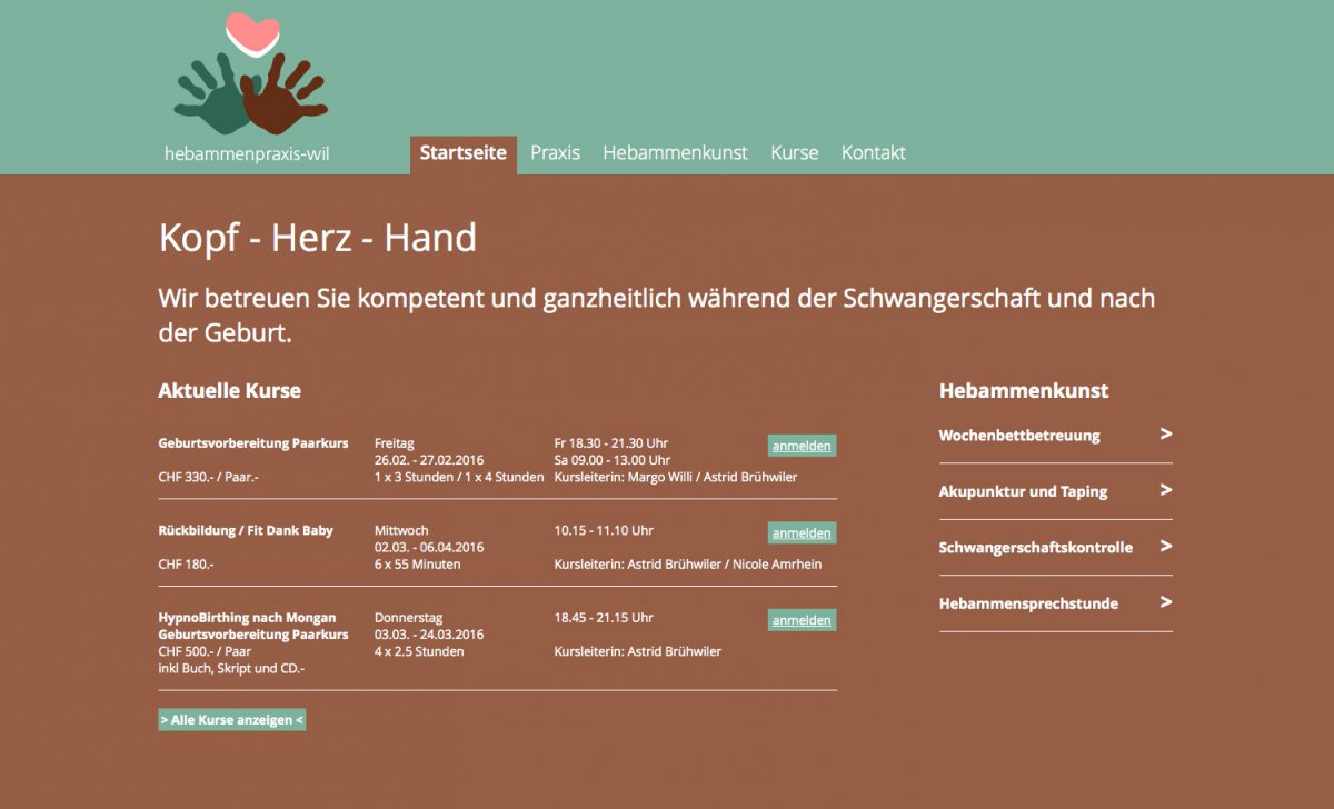 Kopf - Hand - Herz - einfacher Internetauftritt für drei Hebammen aus Wil