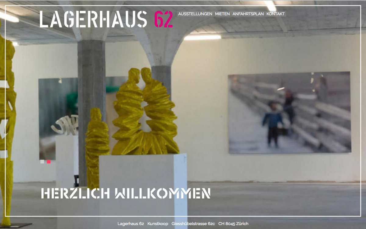 Stimmige Webseite für die Kunstgalerie lagerhaus62.com, Zürich Redesign und Relaunch der Website für das lagerhaus62.com, Responsive. Slider mit Veranstaltungen. Website voll vom Kunden administrierbar.