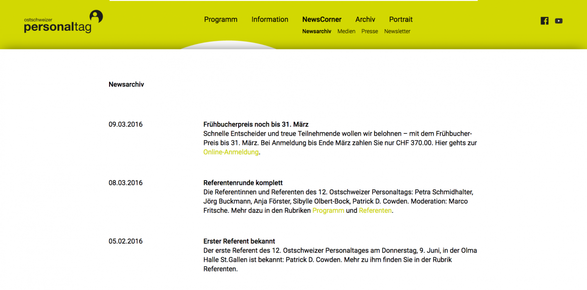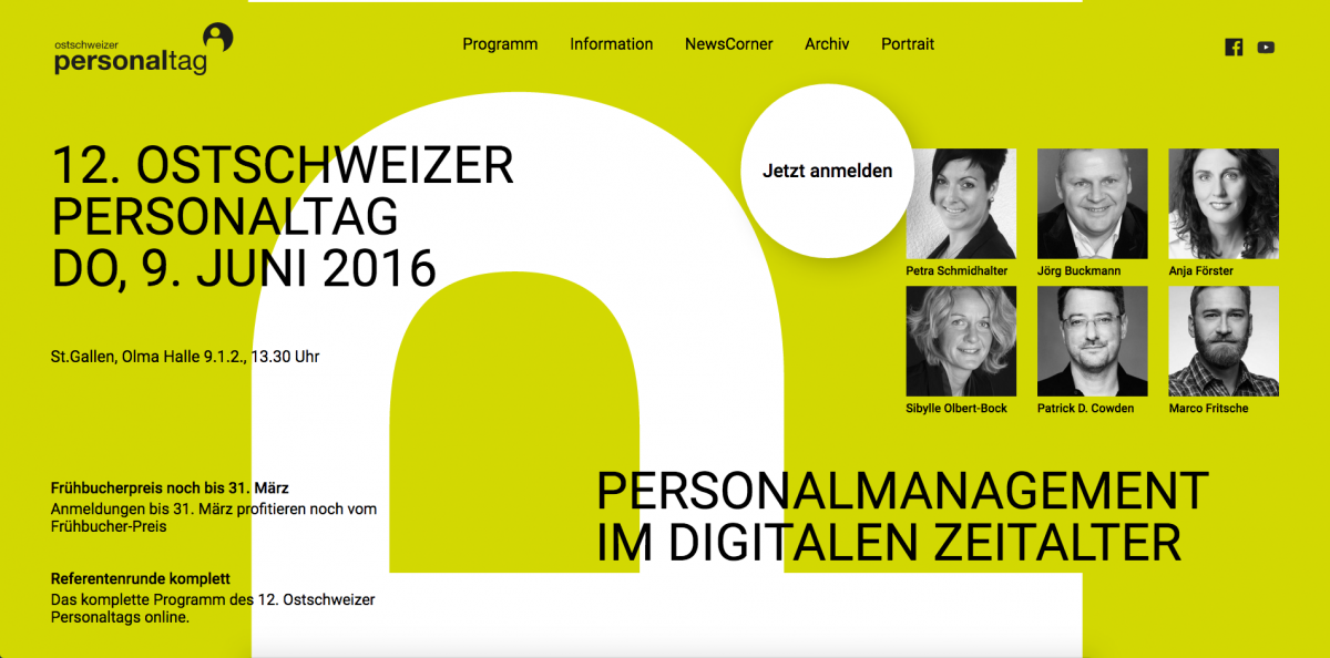 Moderne dynamische Seite für das Projekt Personaltag. Vertikaler Parallax-Slider, Responsive Templates für mobile Endgeräte. Gesamtprojektleitung, Konzept, Design und Inhalt durch freicom.ch - Agentur für Marketing und Kommunikation.