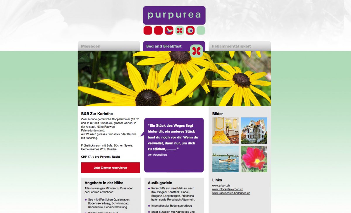 Heidi Zimmermann führt ein kleines Bed and Breakfast in Arbon, sie bietet auch tibetische Massagen an und ist als Hebamme tätig. Ziel des Auftrags war es alle diese drei Tätigkeiten unter Berücksichtigung des CI / CD mittels einer einfachen Webseite zu vereinen.
