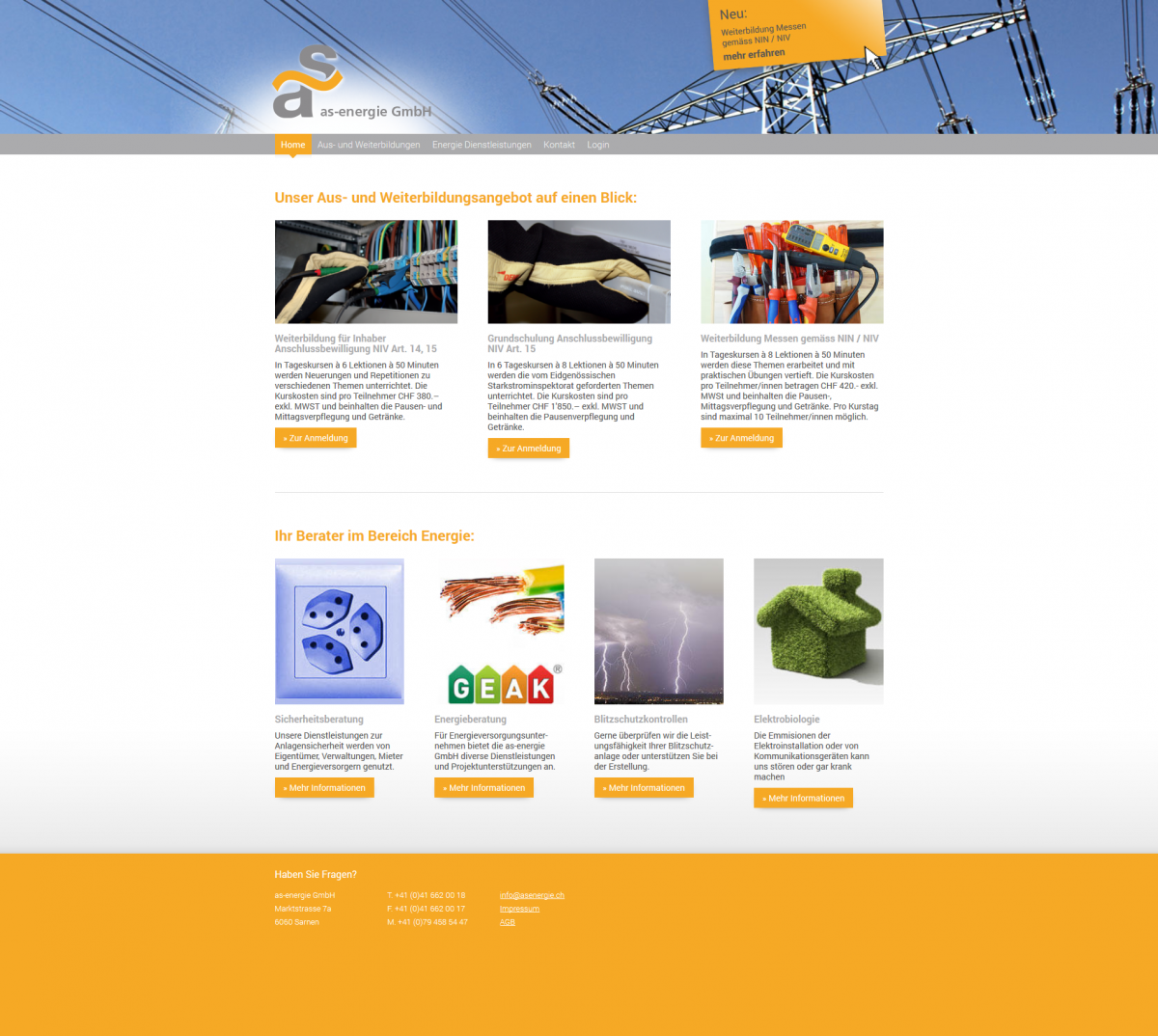 Die Seite der AS Energie erhielt in technischer Hinsicht ein komplettes Upgrade vom Vorgänger MODX Evolution zu MODX Revolution. Dazu wurde das komplette Kurssystem überarbeitet und auf die Bedürfnisse der Kurse angepasst. Die Teilnehmer können sich Online für einen Kurs anmelden, ebenso haben Sie die Möglichkeit auch nach dem Kurs die dazugehörigen Materialien zu downloaden sowie den Kurs zu bewerten. Der Kursleiter kann automatisiert Kurszertifikate automatisch generieren lassen und direkt via E-Mail versenden.