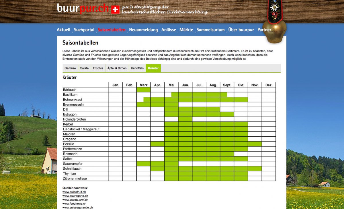 Internetauftritt buurpur.ch - zur Unterstützung der landwirtschaftlichen Dirketvermarktung. Suchportal mit Schweizerkarte / Google-Geotracking - Umsetzung mit dem Content-Management-System MODx.