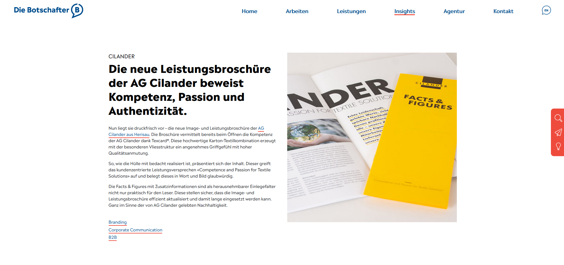 Die Botschafter sind eine der führenden Werbeagenturen der Ostschweiz und Mitglied der „Leading Swiss Agencies“. Als langjähriger Partner für die technische Umsetzung von Internetauftritten wurden wir mit der Umsetzung Ihres neuen Webauftrittes betraut.